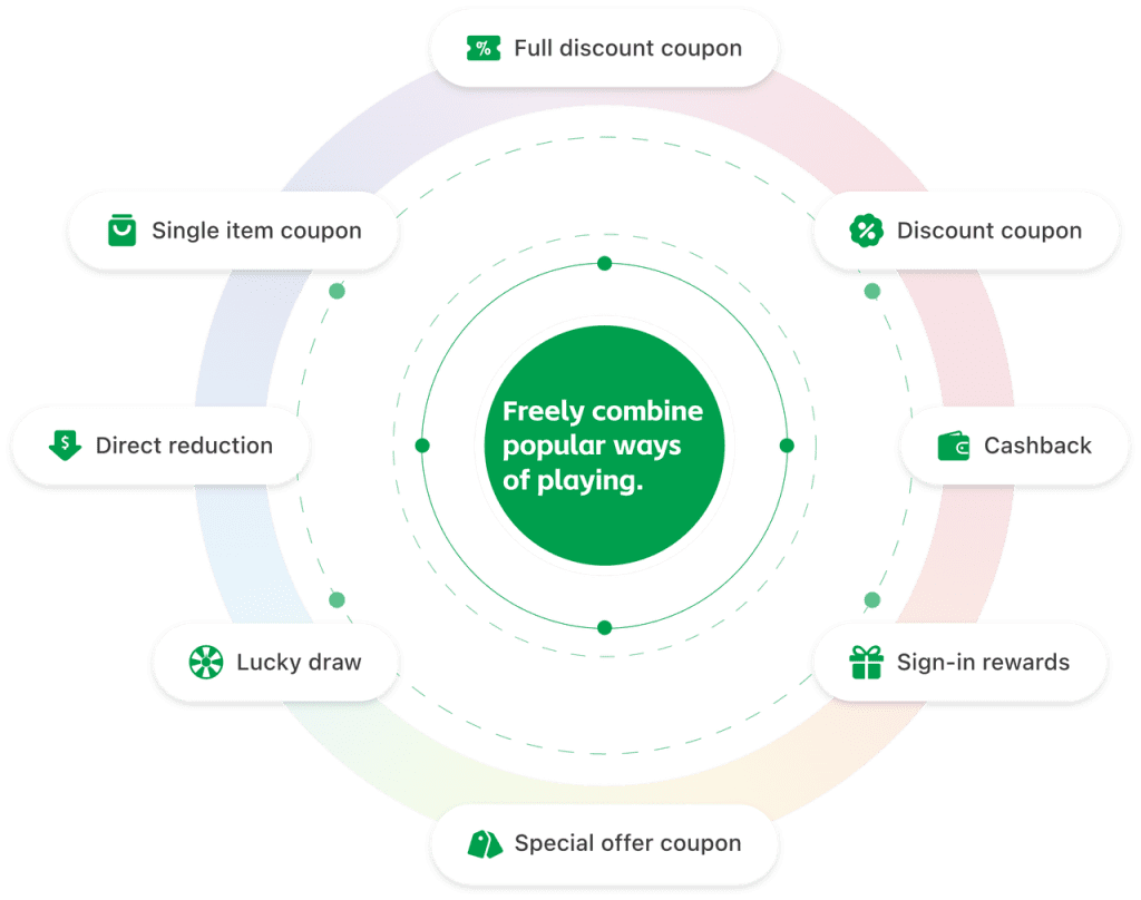 Modular marketing component design allows for quick integration with e-commerce, wallets, and lifestyle service apps. With one click, you can have rich marketing capabilities.